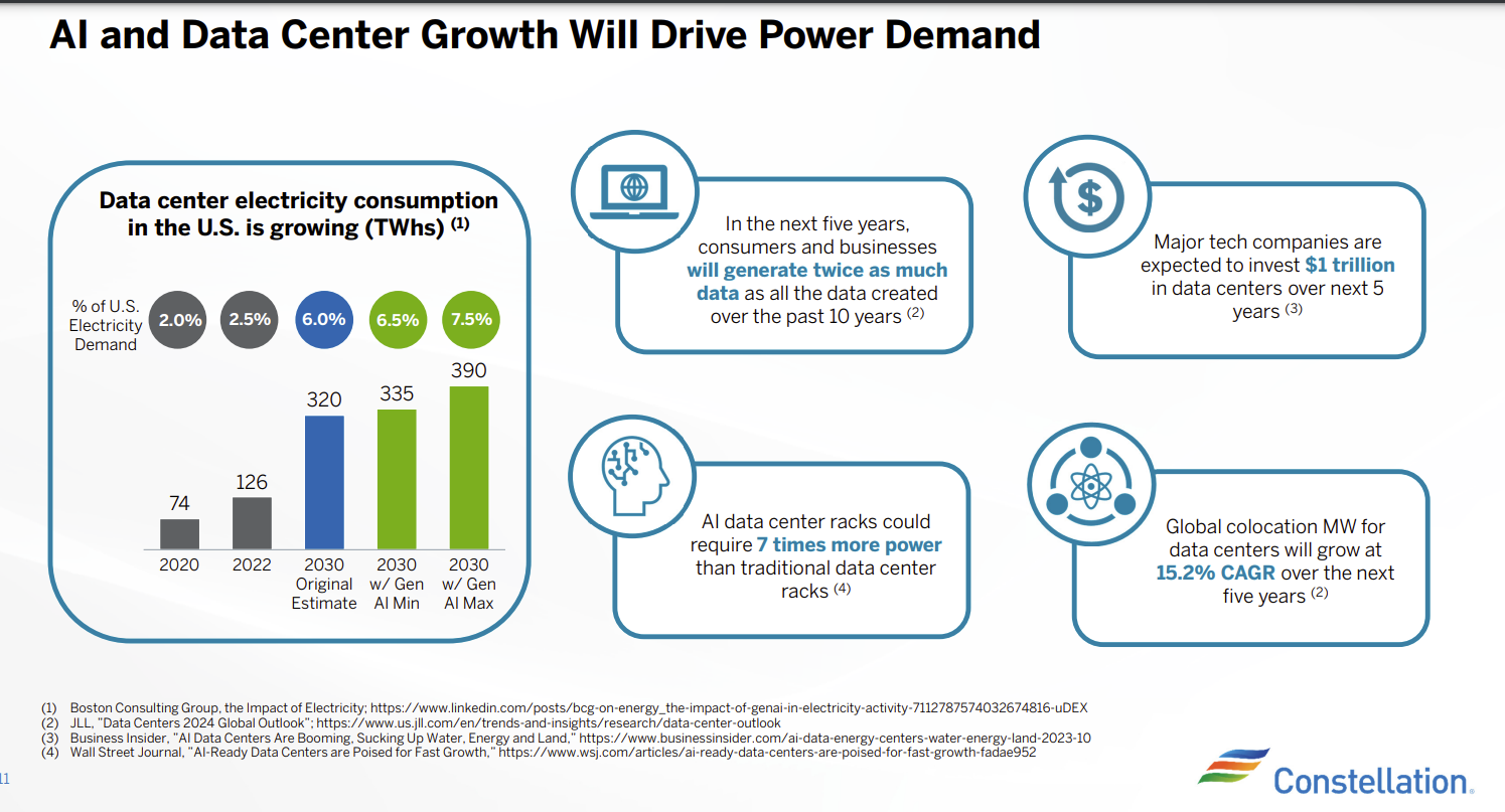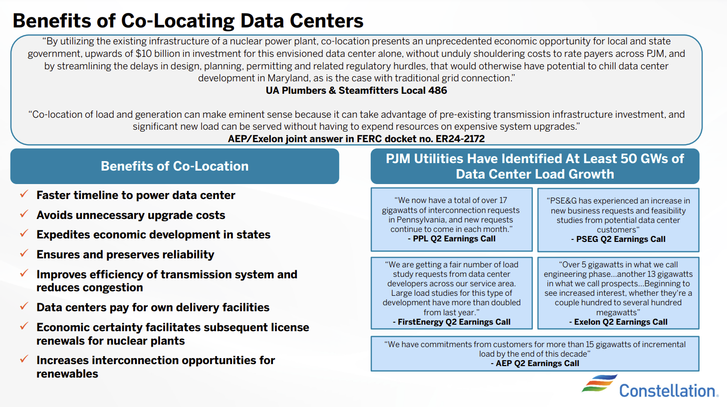 Constellation Energy has advocated for co-locating data centers at nuclear power plants as a way to build out infrastructure for AI quickly.