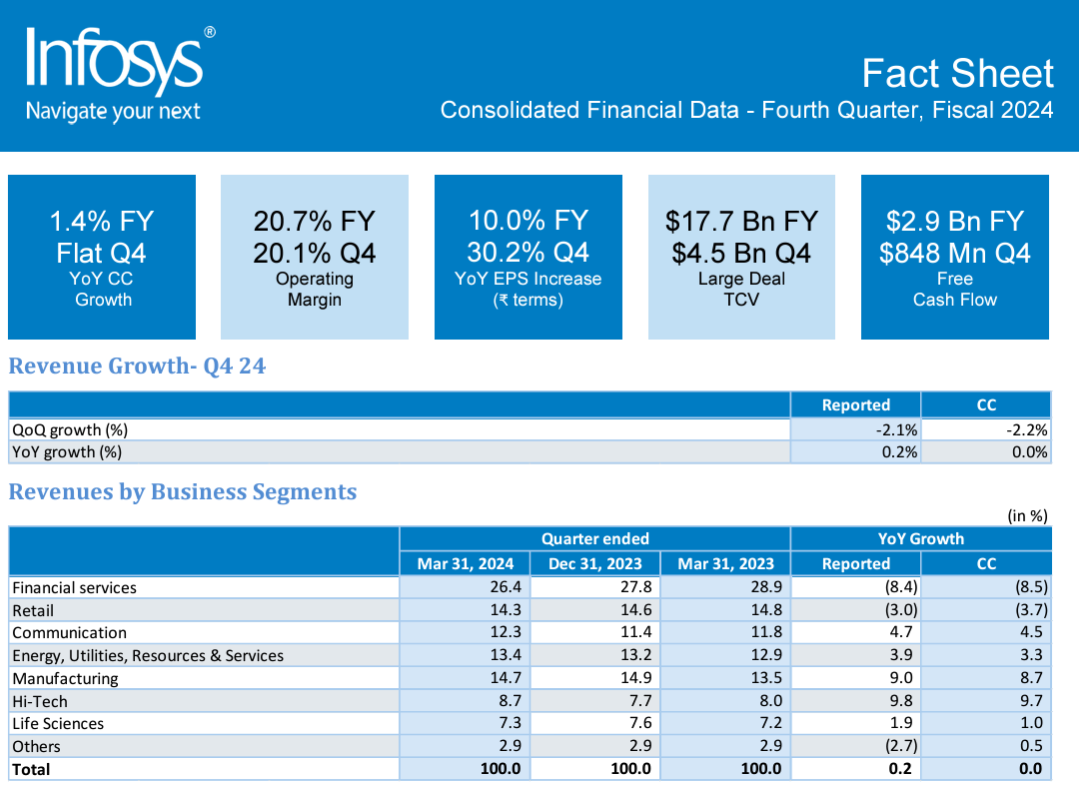 Parekh on a conference call said Infosys said fiscal 2024 brought in $17.7 billion in large deals. These large deals revolve around cost efficiency and consolidation.