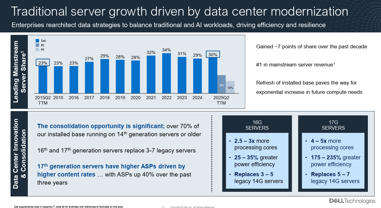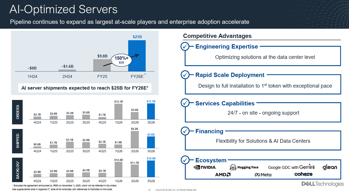 Dell Technologies saw record AI server orders in the third quarter and raised its fiscal 2026 AI shipment guidance to $25 billion, up 150% from a year ago.