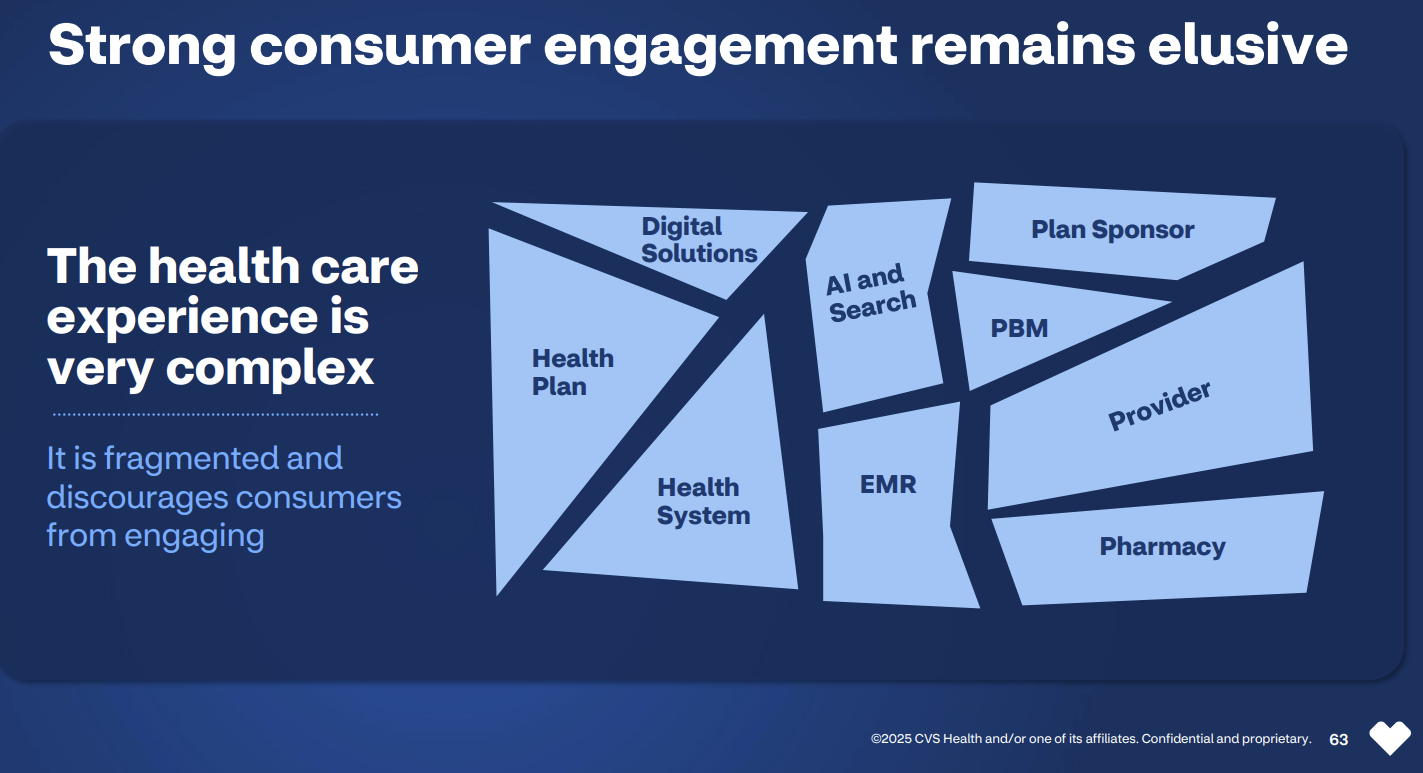With better engagement, CVS Health can enhance access, simplify navigation and improve affordability. CVS Health is aiming to become a trusted source and consolidate a fragmented experience.
