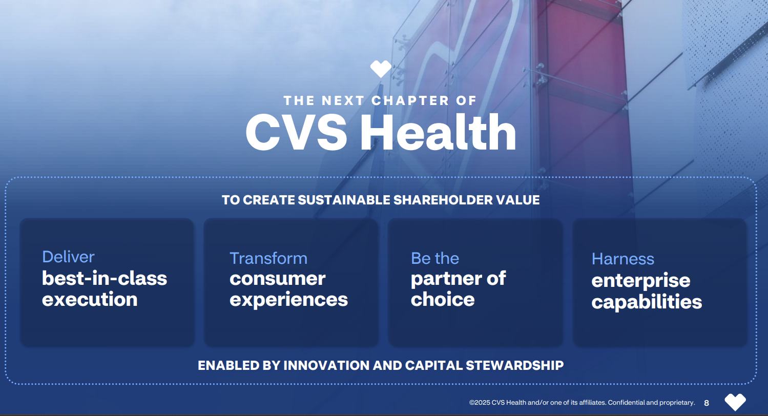 In late 2023, CVS laid out a strategy that revolved around a data flywheel across its customer base that would improve healthcare delivery across multiple touch points. At the time, CEO Karen Lynch touted a plan to "provide panoramic care" for its members. Lynch was replaced by Joyner in October 2024.
