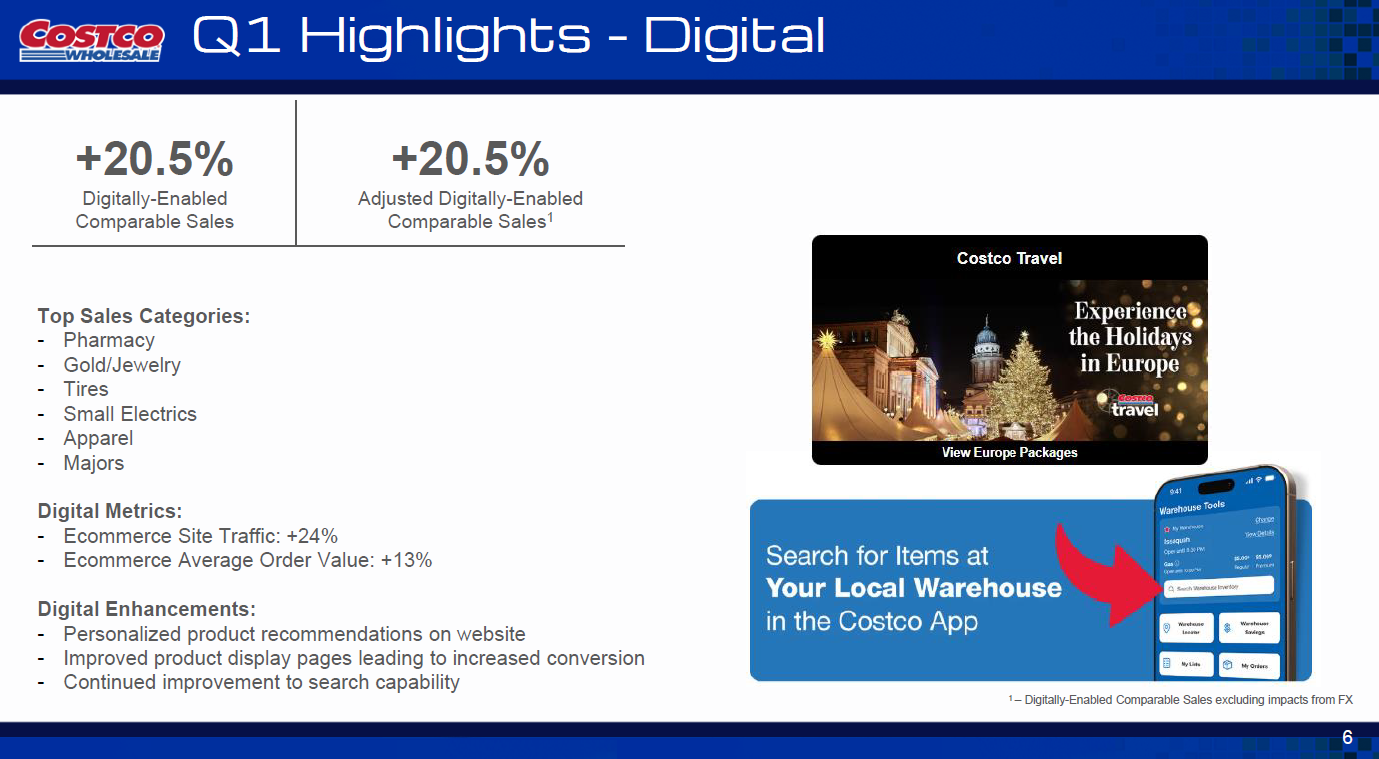 - But if Costco can simply close the technology gap between it and rivals it has plenty of digital commerce upside to complement its real-life customer experiences.