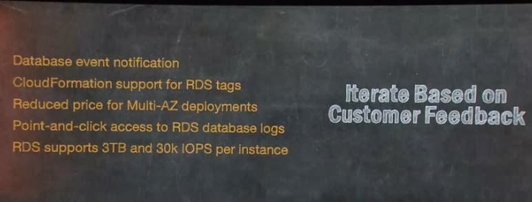 AWS keeps innovating at a very fast pace - no doubt. The good news - and that was abundantly made clear - AWS does so with the customer in mind. And it keeps providing new value from innovation to all its constituents - AWS CloudTrail caters to security concerns shared across the client side, the PostgreSQL support in RDS caters to developers, Amazon AppStream is geared towards developers building compute intensive apps and Amazon Kinesis towards real time analysis needs of both enterprises and ISVs. Only Amazon WorkSpaces is a new market entry.