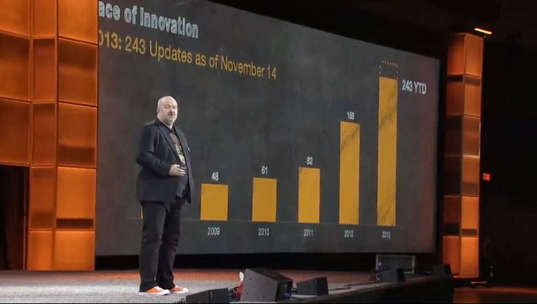 With so far 243 functions and features delivered throughout 2013 AWS is at a record pace of innovation even for their own standard. And Vogels tied things back to the Amazon WorkSpaces and Amazon AppStream from yesterday's keynote as key product deliverables of 2013. It was good to see that Vogels acknowledged that the amount of new features can also be overwhelming, but this will not stop AWS as rapid delivery is in the DNA of the division.