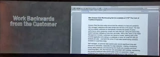 (Part 1 - 3 are in yestereday's post here). As we have heard from Jassy (and every other session we attended at reinvent) AWS is customer focused and customers drive the innovation agenda. Vogels now went into how the development teams achieve this, which is almost like a retro engineering, starting with the customer requirements.