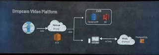 And as expected - when moving to AWS usage started to go massively up - main reason was the free inbound of data into AWS - which was a key reason for dropcam to move to AWS. Then Duffy walked the audience through the dropcam architecture - as expected compression starts on the camera and dropcam makes uses of Scala, Python and PostgreSQL heavily using DynamoDB.