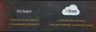 And Vogels took a stab at the competition, too - the old guard, as AWS management describes them, as being technology and not customer driven, and that the guard adds technology as wished, which leads to unnecessary complexity vs. AWS that only adds features that are customer requested.