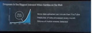 The showcase for massive real world to AWS connection then was dropcam, with their CEO and co-founder Gret Duffy on stage. And Duffy made the great point that it was not about the hardware, but the software - so dropcam did not have to build the camera - but a camera web service. And interesting dropcam is the largest video service on the web - with more data uploads per minute than Youtube.
