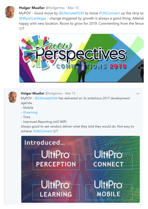 Ultimate Software had their yearly user conference, Ultimate Connections at the Wynn in Las Vegas, from March 11th till 14th 2018. The event was very well attending with over 4k+ customers and prospects, Ultimate had to find a new home for Ultimate Connections as the conference has outgrown the Bellagio. I wasn't able to attend, but Ultimate was so kind to rope me in remotely into keynote and analyst meeting sessions, very much appreciated.