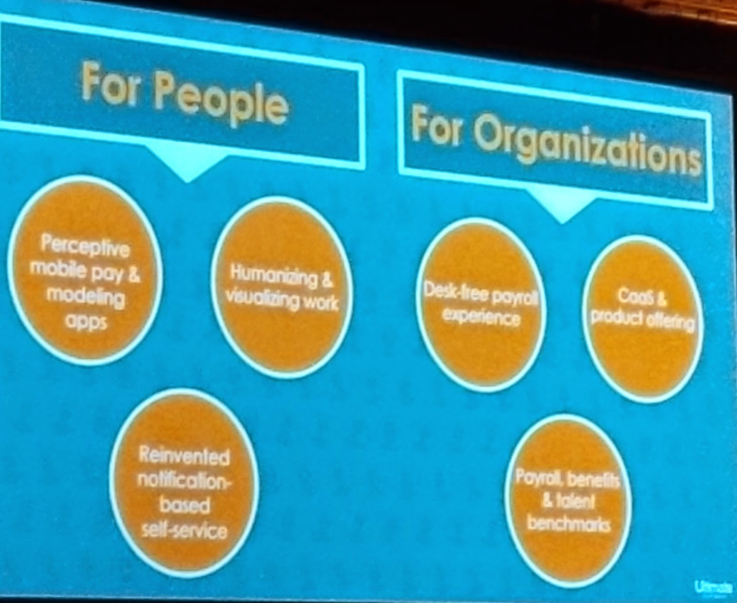 Roadmap – Ultimate shared the roadmap plans for 2016 and we need to look more into a lot of details – but it looks like the heavy hitters are a new Workforce Management solution, more global capabilities (UltiPro just added German and Dutch), Payroll enhancements, and more integration and configuration capabilities.