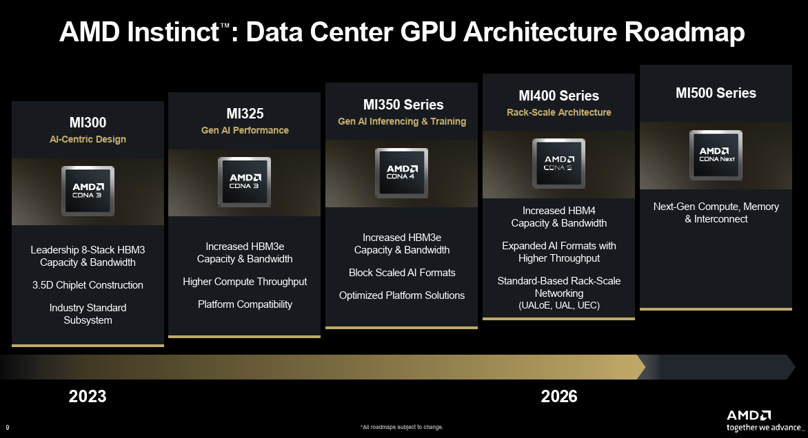 On the product front, AMD executives outlined the AMD Instinct roadmap including Helios systems with AMD Instinct MI450 Series GPUs followed by the MI500 in 2027.