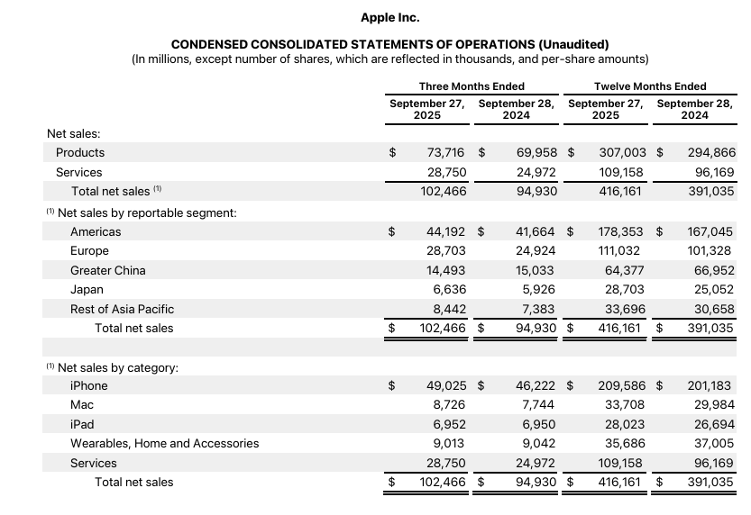 - Apple reported fiscal 2025 revenue of $416.16 billion with net income of $112 billion.