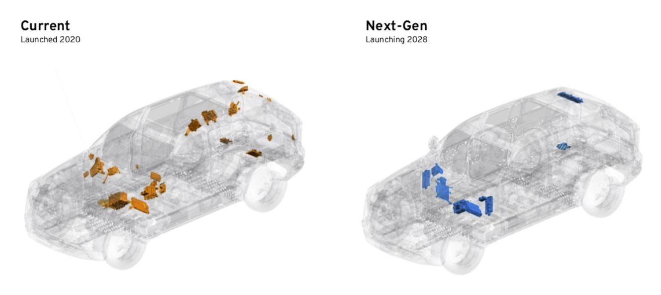 "In our current vehicle architectures, we have a lot of components spread around the vehicle. In our new architecture, we'll have a central compute unit and then a lot simpler components on the edge. The logic, the software, the orchestration work happens in that central unit," said Richardson. "And this will allow us to greatly simplify the wiring inside the vehicle. It simplifies doing OTAs and updates and software development."