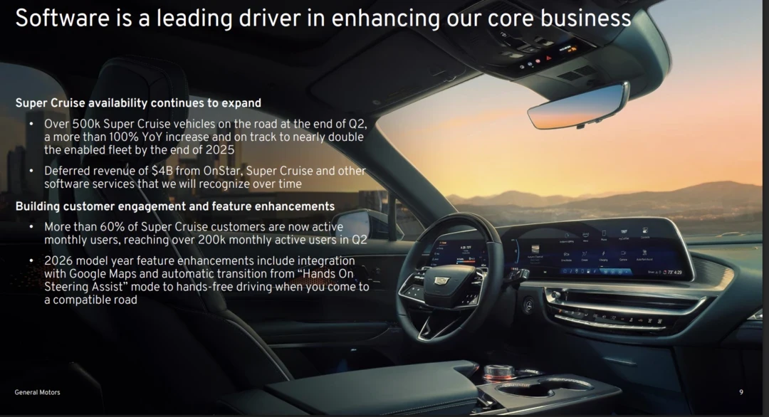 So far, GM has booked $4 billion in deferred revenue from software services. Super Cruise revenue is projected to top more than $200 million in 2025.