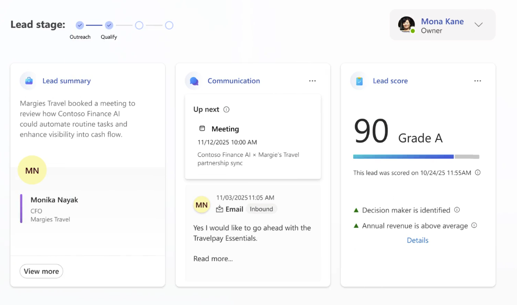 Microsoft's Sales Development Agent, now available in the Frontier program, indicates where the company's AI agent strategy is headed. Sales Development Agent is autonomous and will search for, qualify and engage leads. The agent will also research prospects, create personalized outreach and follow up with the ability to hand off to a human.