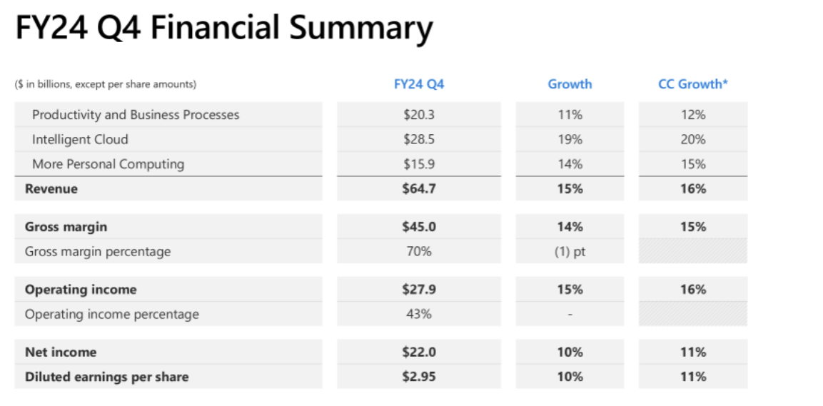 Microsoft Q4 strong, Azure growth 29% and a bit light