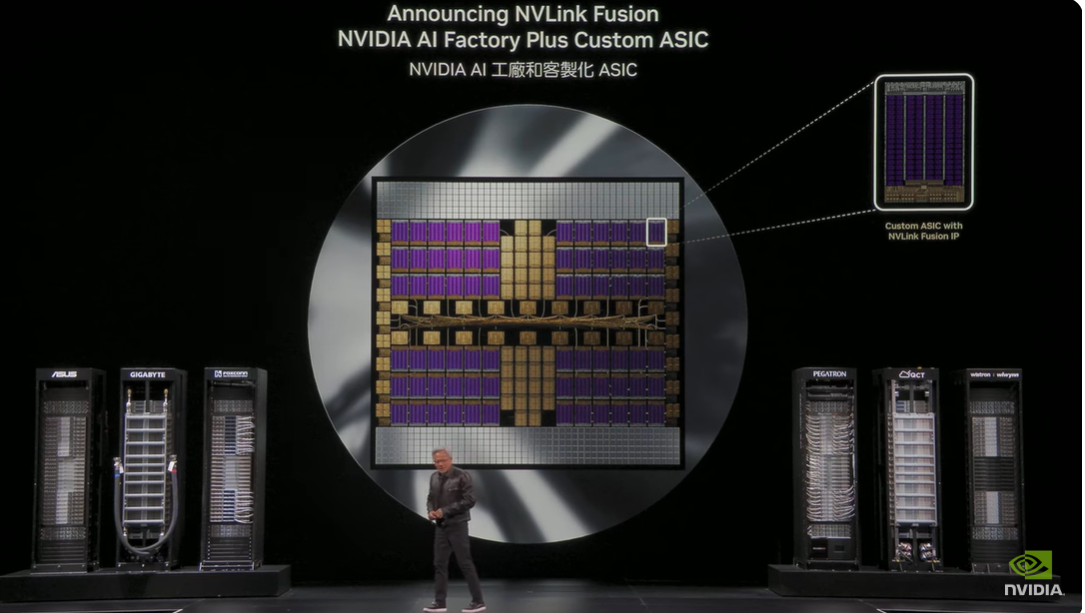 Speaking at his Computex 2025 keynote, Nvidia CEO Jensen Huang unveiled NVLink Fusion. NVLink Fusion allows cloud providers and presumably sovereign AI efforts and ultimately private infrastructure to use any ASIC or CPU to scale out Nvidia GPUs. For cloud providers like AWS, Google Cloud and Microsoft, NVLink Fusion gives them the option to couple their custom CPUs with Nvidia.