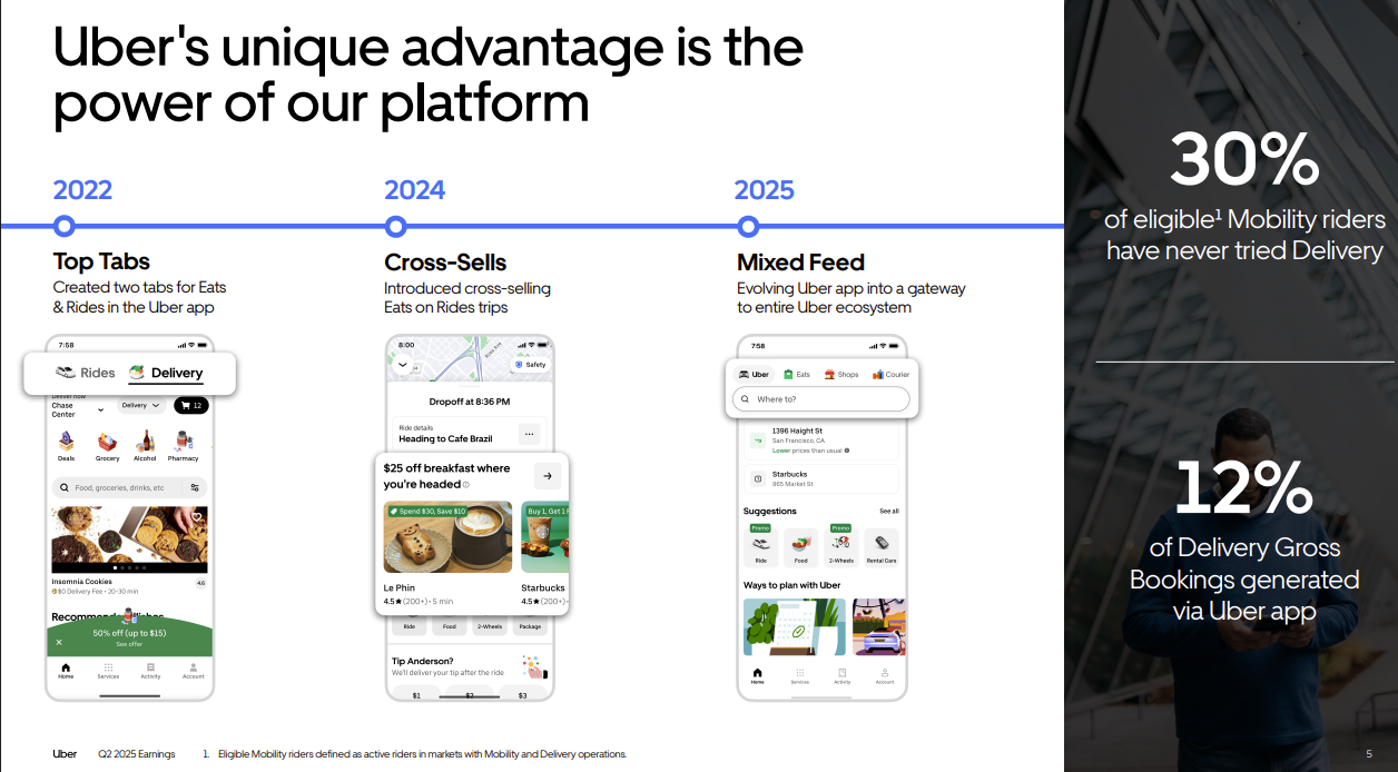 "Larger and more sophisticated AI models are also improving our ability to encourage cross-platform activity for the right consumers at the right time—for instance grabbing coffee on your way to the office, or having your groceries delivered right as you arrive at your vacation rental. This is a key focus area that’s still in its early innings, and you will continue to see us innovate in both the Uber and Uber Eats apps to supercharge cross-platform activity," said Khosrowshahi.