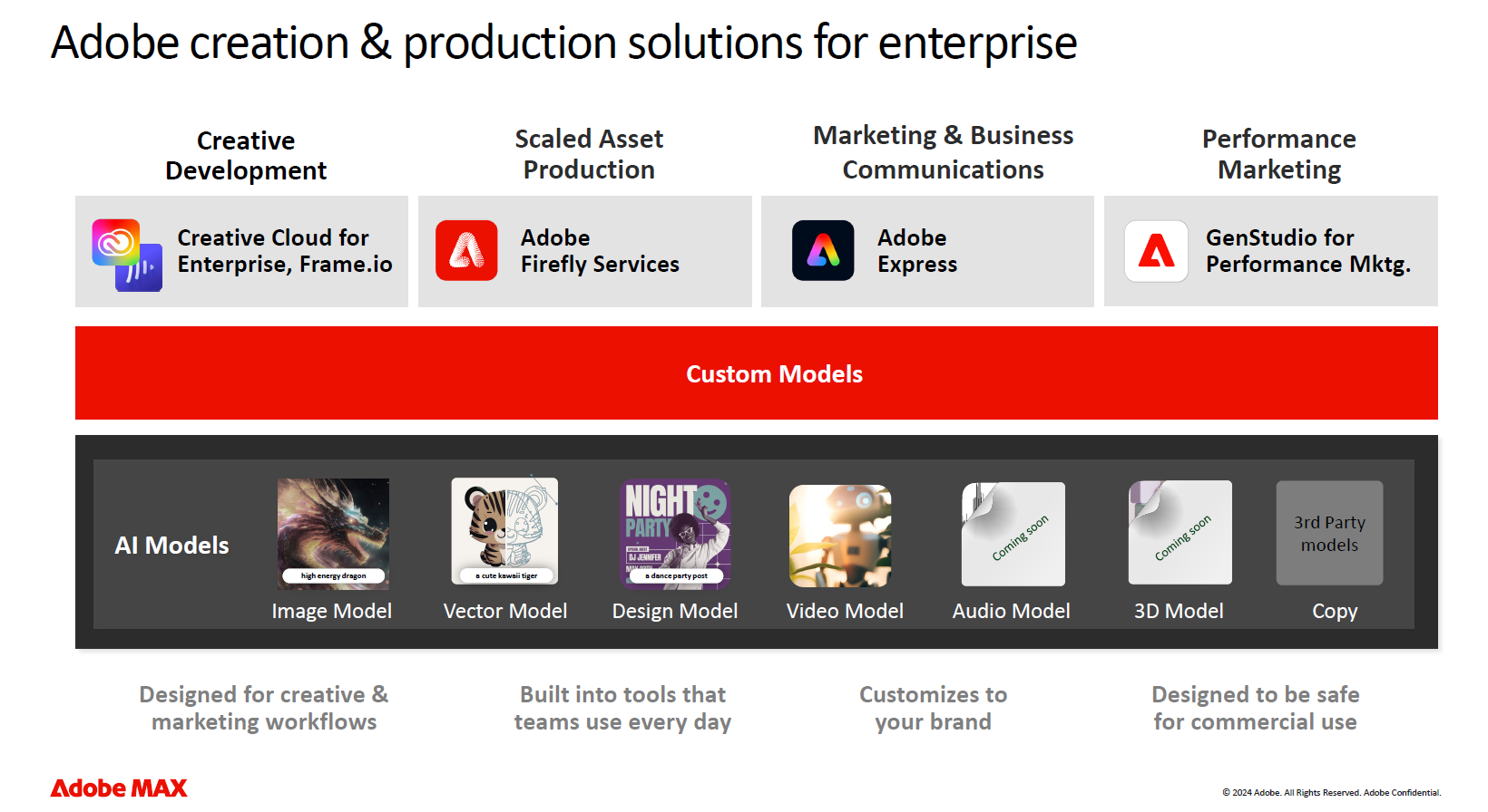 Adobe launched its Firefly Video Model in beta, added Adobe GenStudio for Performance Marketing and layered generative AI features throughout its suite of products.