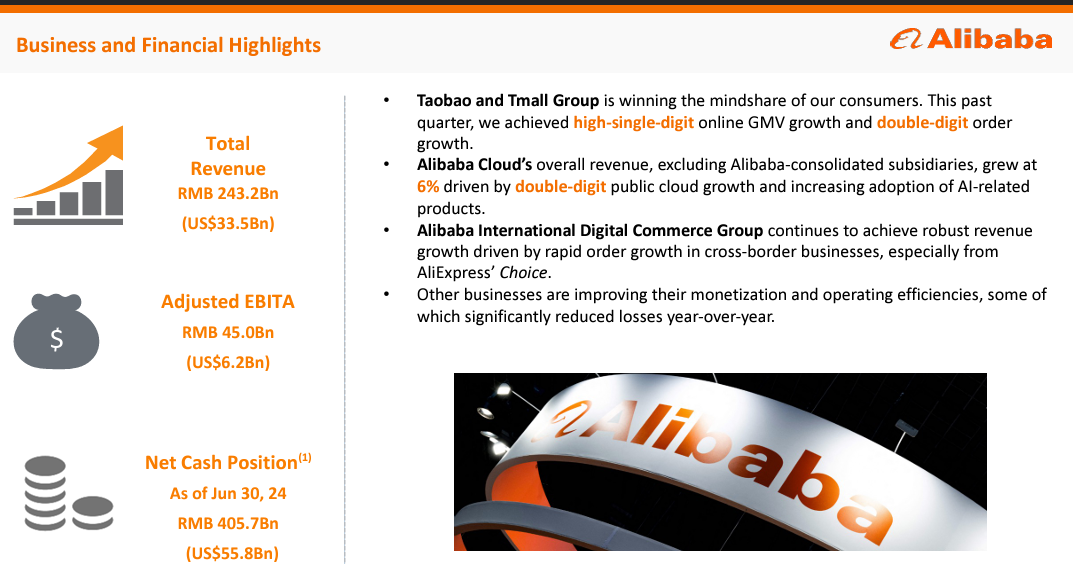 The company reported first quarter earnings of $3.34 billion, down 27% from a year ago. Alibaba is facing competition from rivals such as PDD and JD.com. Alibaba has had success with its Alibaba International Digital Commerce (AIDC) business, which includes retail and wholesale marketplaces including Lazada, AliExpress, Trendyol, Daraz, Miravia and Alibaba.com. First quarter revenue for AIDC was up 32% from a year ago.