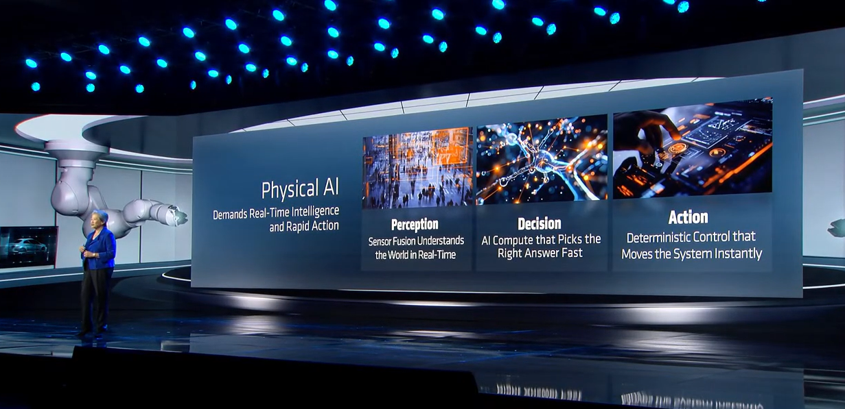 "At AMD, we spent more than two decades building the foundation of physical AI today. We're doing it together with a broad ecosystem of partners. Physical AI is one of the toughest challenges in technology. It requires building machines that seamlessly integrate multiple types of processing to understand their environment, make real time decisions and take precise action without any human input, and all of this is happening with no margin for error. Delivering that kind of intelligence takes a full stack approach."