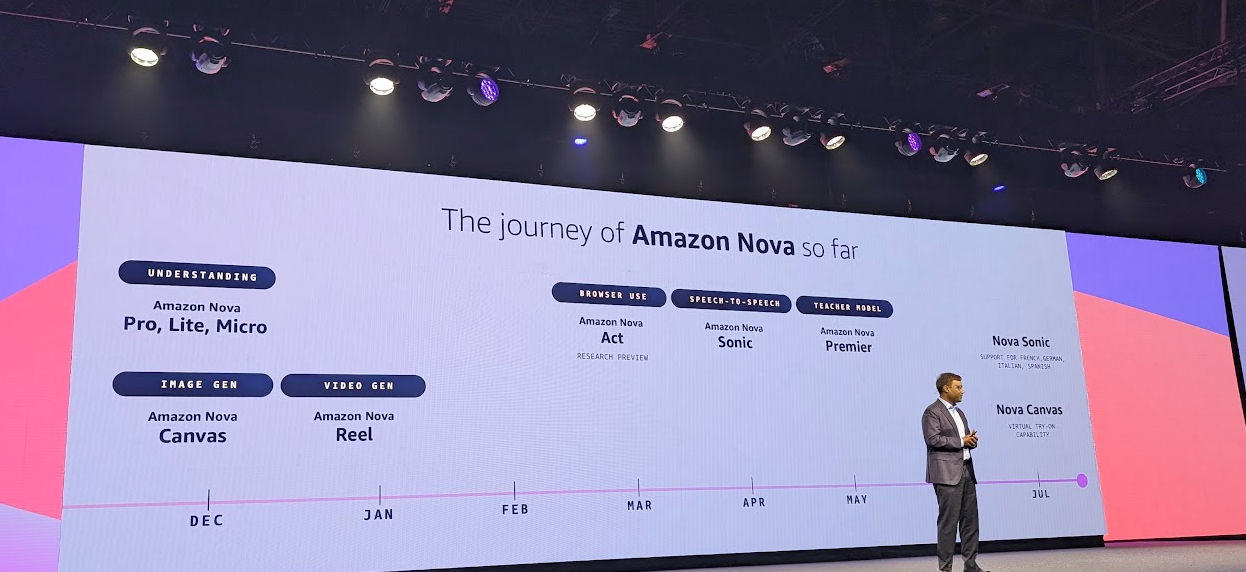 Customization for Amazon's Nova models. AWS announced the ability to customize its Nova models for enterprise use cases in SageMaker AI. AWS will provide optimization recipes, model distillation and customization to balance cost and performance. Nova has launched eight models in 6 months.