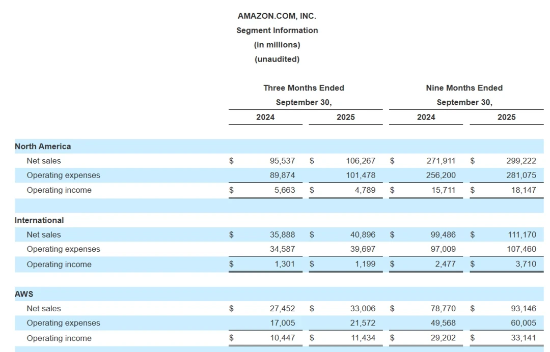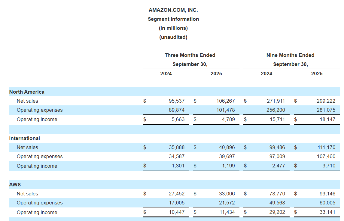 The AWS results landed in a better-than-expected quarter for Amazon overall. Amazon reported third quarter net income of $21.1 billion, or $1.95 a share, on revenue of $180.2 billion.