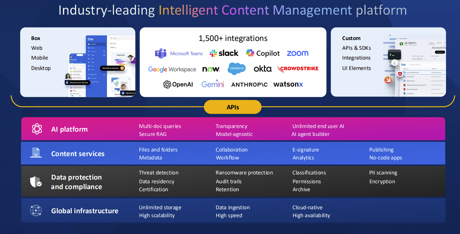 The Box earnings follow the company's rollout of Box AI Agent integration for Microsoft 365 Copilot, IBM watsonx Orchestrate, Google Agentspace, Slack AI, ServiceNow AI Agent Fabric and Zoom AI Companion as well as the Box Model Context Protocol (MCP) server. Box is also officially integrated with OpenAI's ChatGPT's deep research agent. If there's a foundational model such as Meta's Llama or Grok, Box plans to integrate.