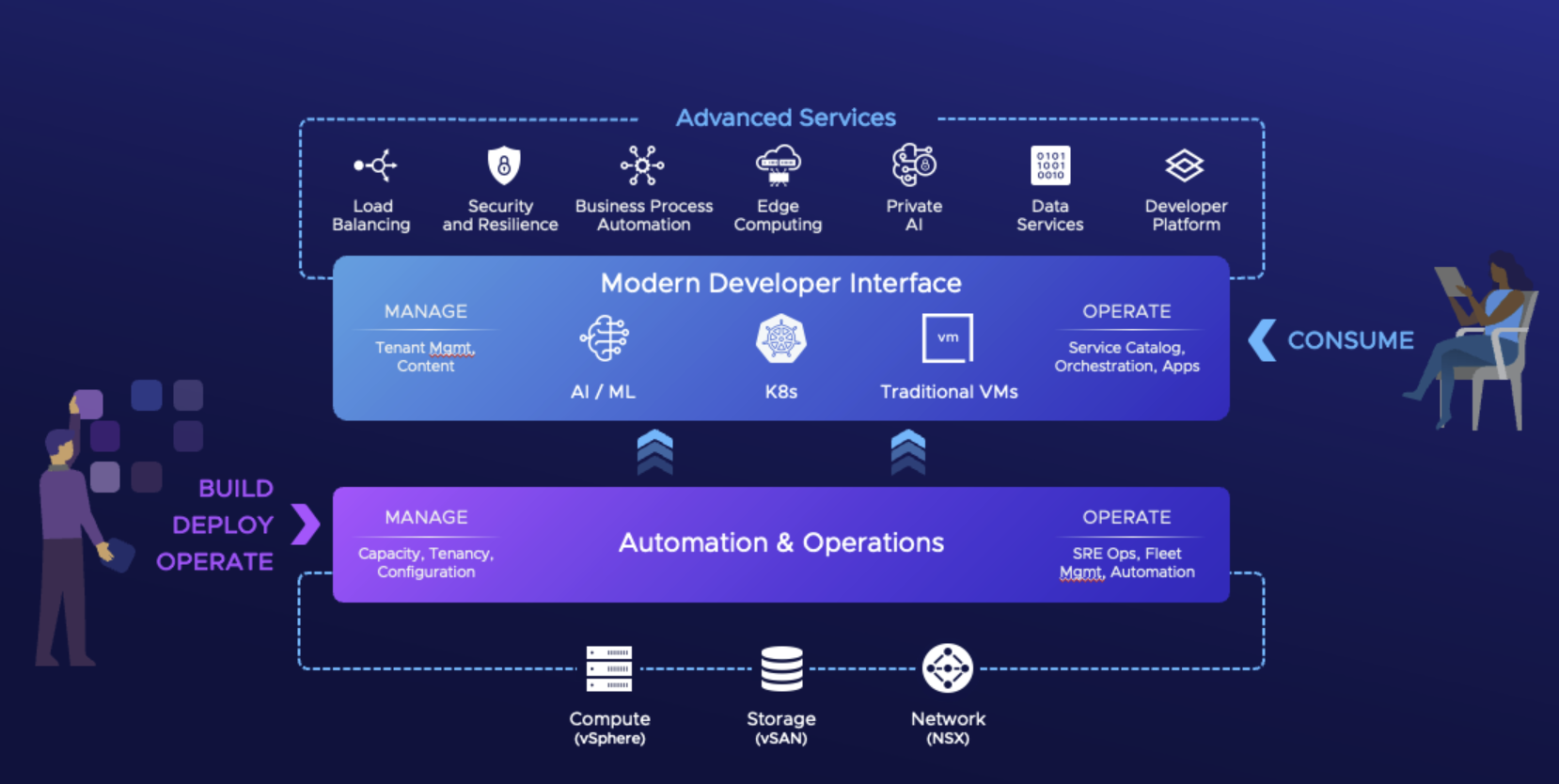 VMWare launched Tanzu Platform 10 with a focus on genAI workloads. VMware also rolled out Tanzu AI Solutions, a set of tools to deliver genAI applications. Tanzu Platform 10 is designed to ride shotgun with VCF and features the following: