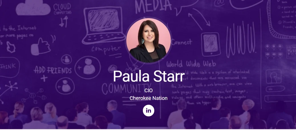Paula Starr is a Cherokee citizen leading technology delivery at the Cherokee Nation, the United States' largest federally recognized tribe. With a team that supports 4,000 employees across Cherokee reservation CIO Starr is in a unique position to deliver digital services while maintaining community values.