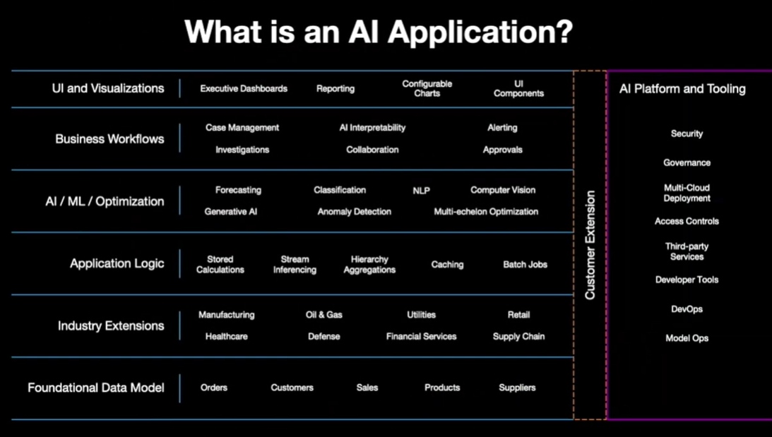 During a keynote, Rami said an enterprise AI application needs a series of tools and features. He also walked through C3 AI's suites for various functions and industries such as supply chain, reliability, sustainability, state and local government, defense and intelligence.