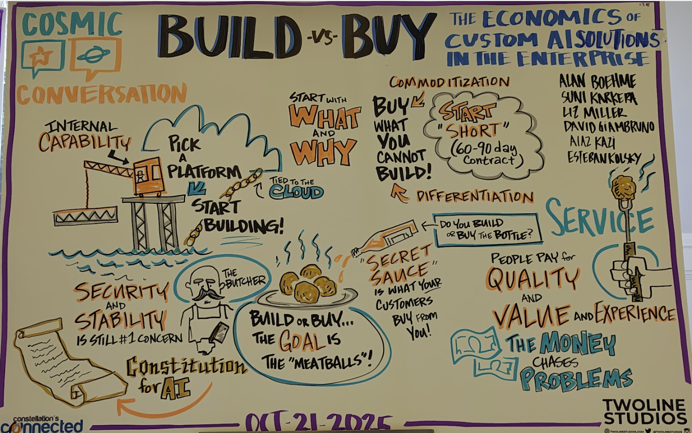 Not surprisingly, build vs. buy was a key debate. The consensus among the Constellation Research community was more in the build camp. Ultimately, enterprises are going to do both build vs. buy.