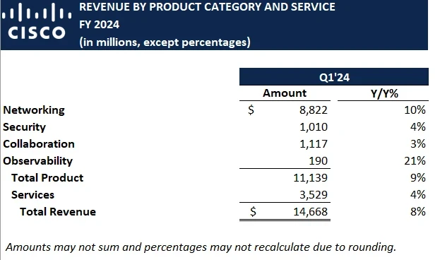 Cisco Systems reported better-than-expected first quarter results, but its fiscal 2024 outlook fell short of expectations. Cisco said it saw "a slowdown of new product orders in the first quarter of fiscal 2024."