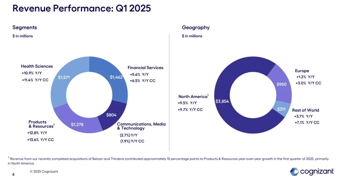 As for the outlook, Cognizant projected revenue growth of 5.9% to 7.4% and full year revenue of $20.5 billion to $21 billion, up 3.9% to 6.4%.