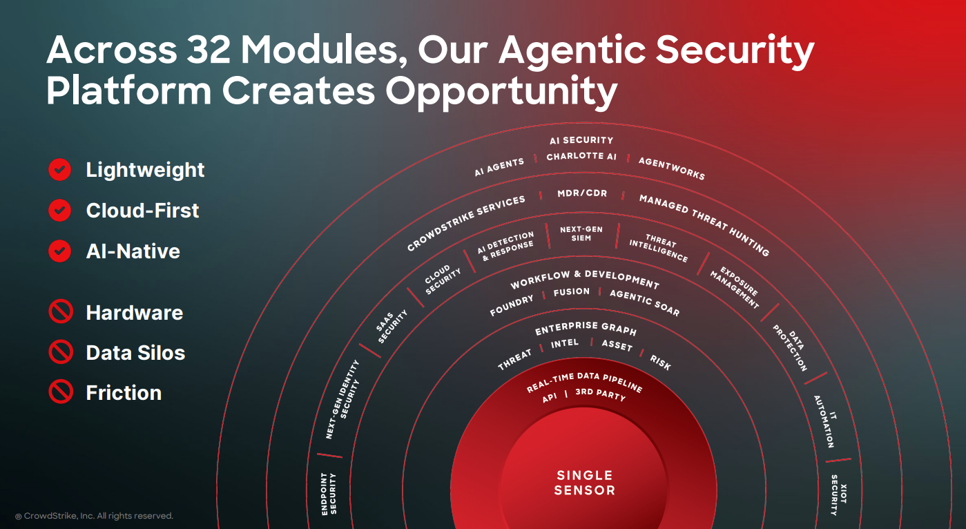 Burt Podbere, CrowdStrike's CFO, said AI related demand was strong as customers consumed more of the company's Falcon platform and Flex subscription plans. The company said that second half fiscal 2026 net new annual recurring revenue will remain north of 50%.
