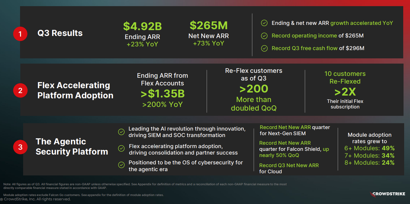 CrowdStrike reported strong third quarter results as the company continued to land security wallet share with revenue growth of 22%.