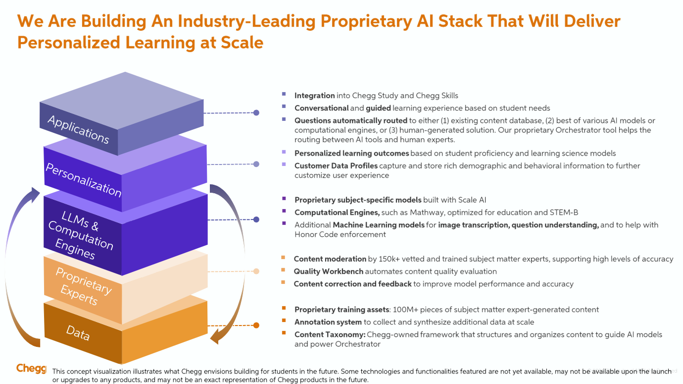 In a shareholder letter that went along with its restructuring, new CEO Nathan Schultz said the company is going all-in on generative AI to offer better learning experiences. Schultz added that Chegg will provide 360-degree individualized support for students that will couple proactive guidance and a combination of AI, content and human experts.