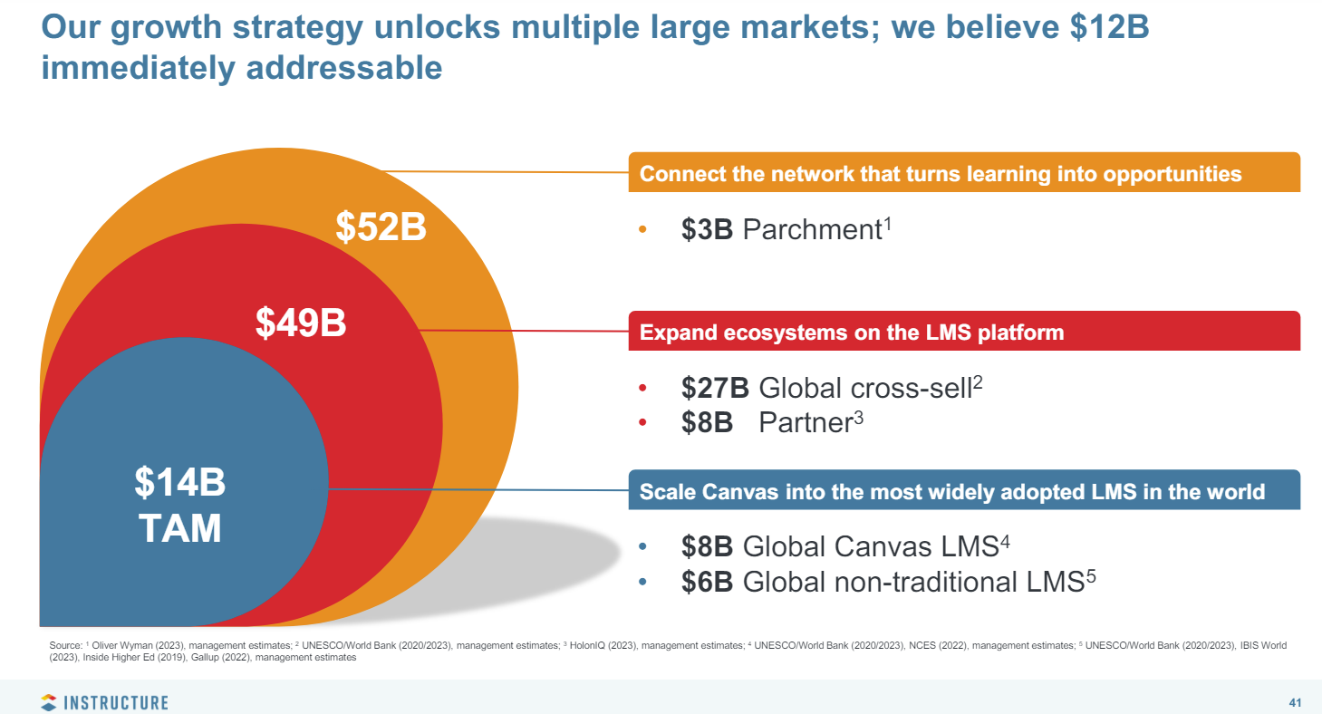 Instructure could be a consolidator in the education technology market. In February, Instructure completed the purchase of Parchment, which operates an academic credential market platform.