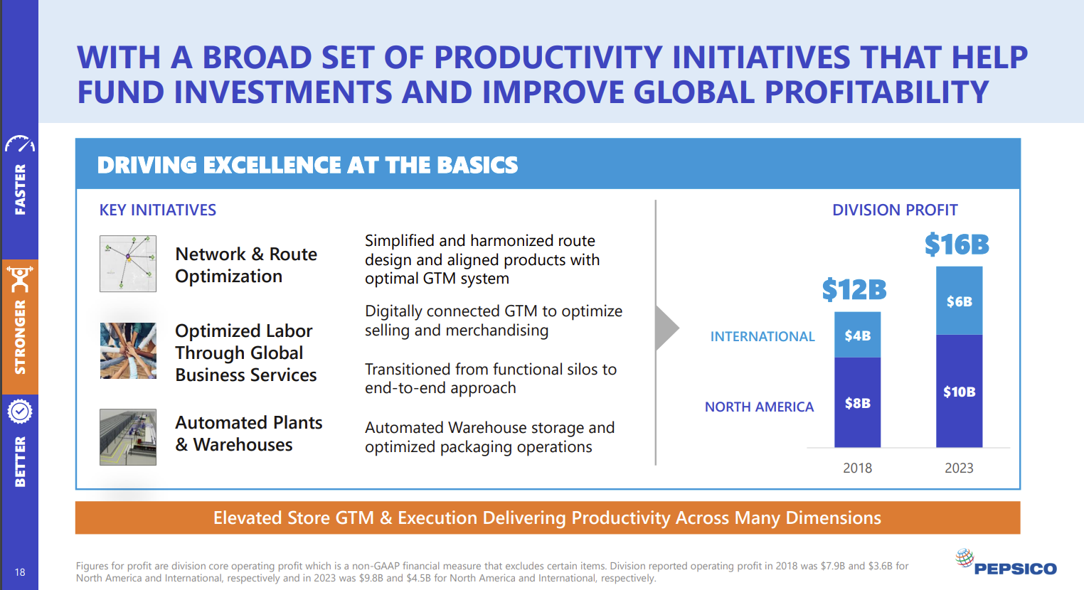 With consumers becoming tapped out, PepsiCo plans to fund investments going forward with productivity savings. PepsiCo has its process optimization game down.