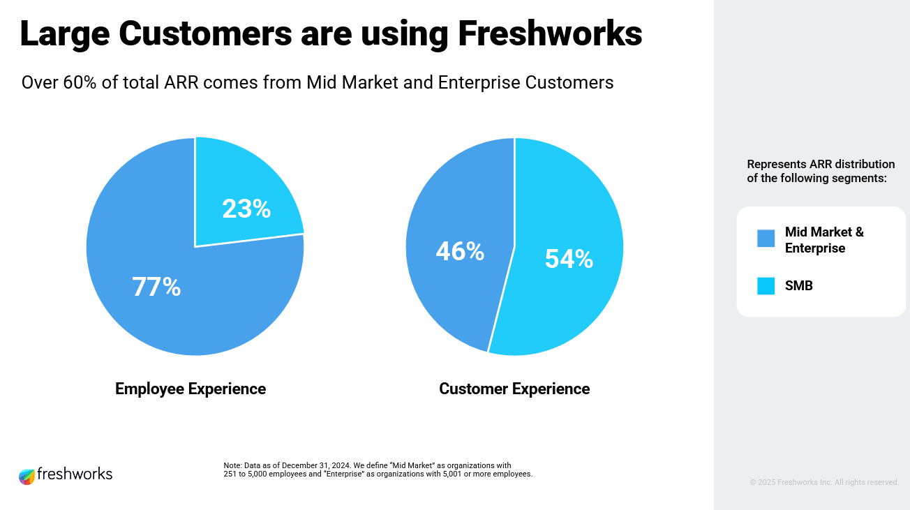 More mid-market and enterprise customers are turning to Freshworks as they leave behind our largest IT competitors. We believe thatâs because big SaaS vendors are overcharging and underserving their customers, particularly in the mid-market."
