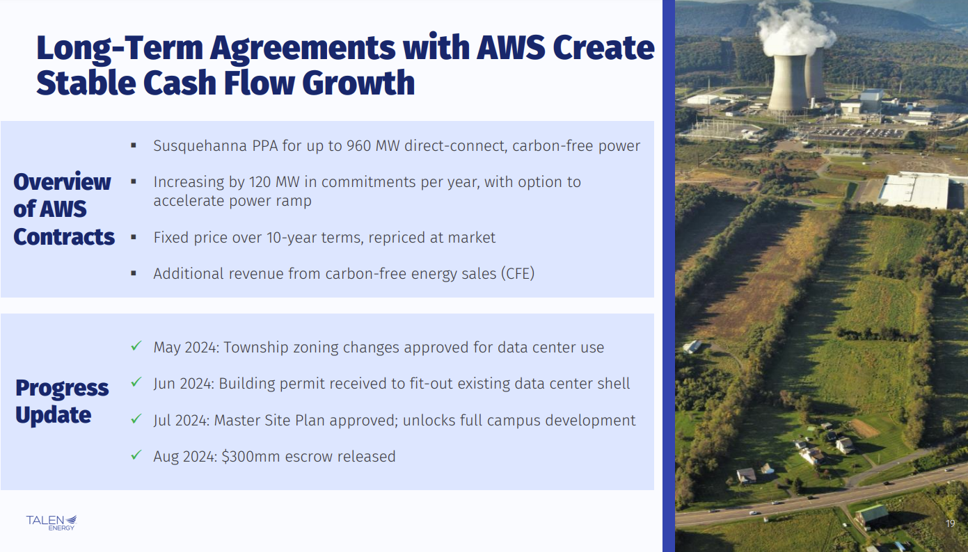 And in January, Amazon Web Services acquired a data center attached to Talen Energy's nuclear plant. Talen Energy will sell power to AWS.