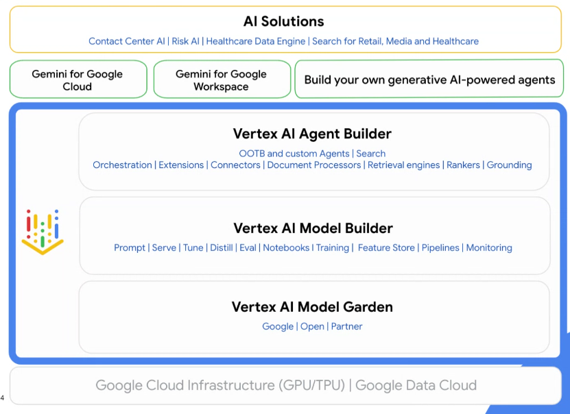 - At the infrastructure layer, Google Cloud outlined the latest GPU/TPI support, PyTorch enhancements, Axion, Google's first custom designed Arm processor, and confidential computing enhancements. Distributed Cloud will be aimed at sovereignty workloads and AI anywhere use cases.