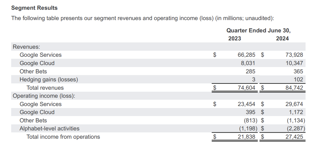 It was the first quarter where Google Cloud topped operating income of $1 billion. Google Cloud reported second quarter operating income of $1.17 billion.