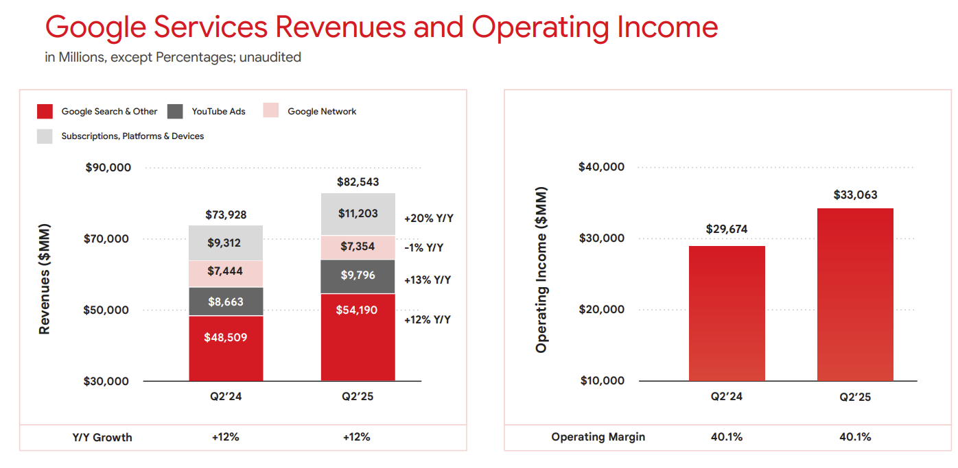 As expected, Google Services delivered most of Alphabet's operating income with $33.06 billion on revenue of $82.5 billion. Google Cloud operating income was $2.83 billion.