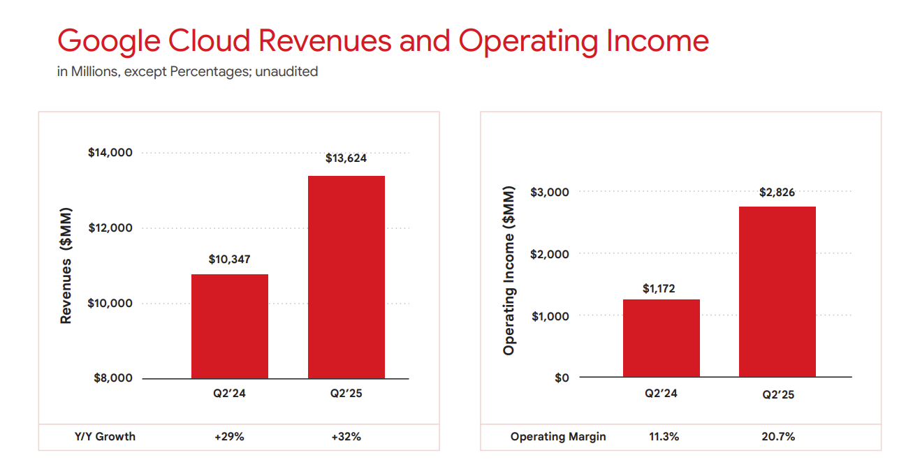 Google Cloud revenue in the second quarter surged 32% to $13.6 billion as Alphabet parent of Google, delivered better-than-expected results.