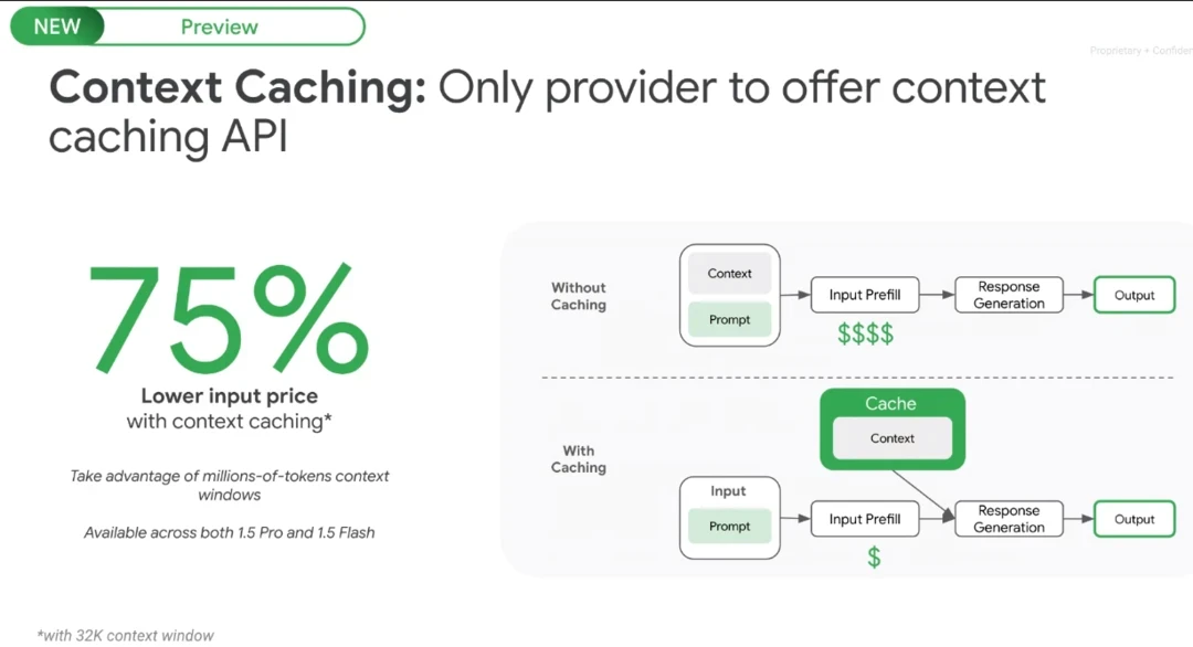 "By introducing a context cache, you only need to give the model the input prompt. You don't have to feed in the context on each request. This is obviously super helpful in lowering the cost of input into the model. It becomes particularly helpful if you've got a long context window and you don't want to keep feeding that long context every time. It is also helpful in applications like chain of thought reasoning, where you want the model to maintain the context rather than must feed it and on every request. So that's a big step forward."