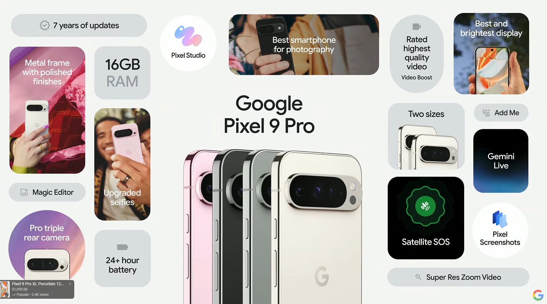 - Pixel 9 devices will be powered by Google's Tensor G4 silicon that was designed with Google DeepMind. The Tensor G4 will run Gemini Nano with Multimodality so the phone can understand text, images and audio. Google also launched the Pixel 9 Pro Fold. Pixel 9 devices start at $799.