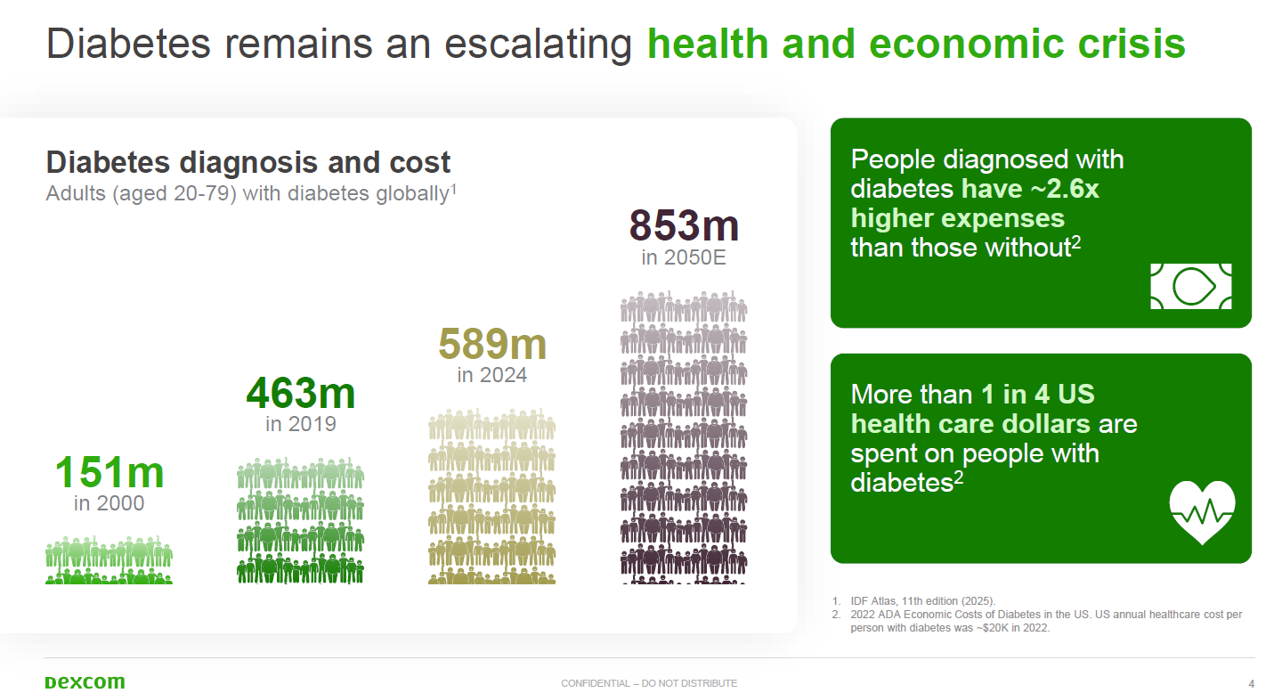 Dexcom, which makes glucose monitoring equipment and technology, is betting that it can dramatically expand its total addressable market for people with diabetes with a big assist from generative AI.