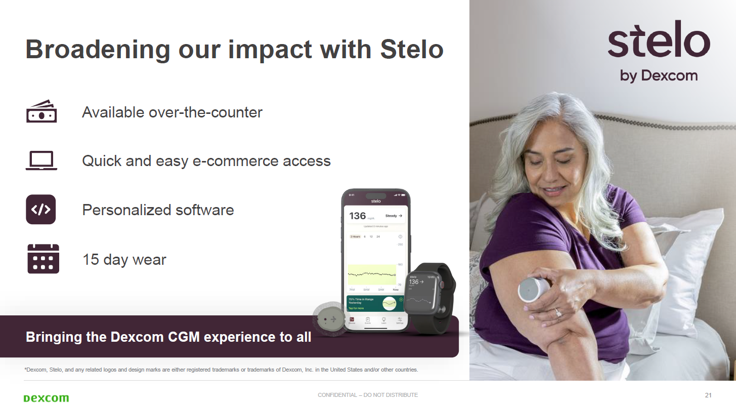Indeed, Dexcom has been adding features to Stelo including updates for 180-day lookback feature. Sayer said Stelo's customer experience metrics are improving due to the updates. Dexcom also recently received FDA clearance for its 15-day Dexcom G7 system that will roll out later this year.