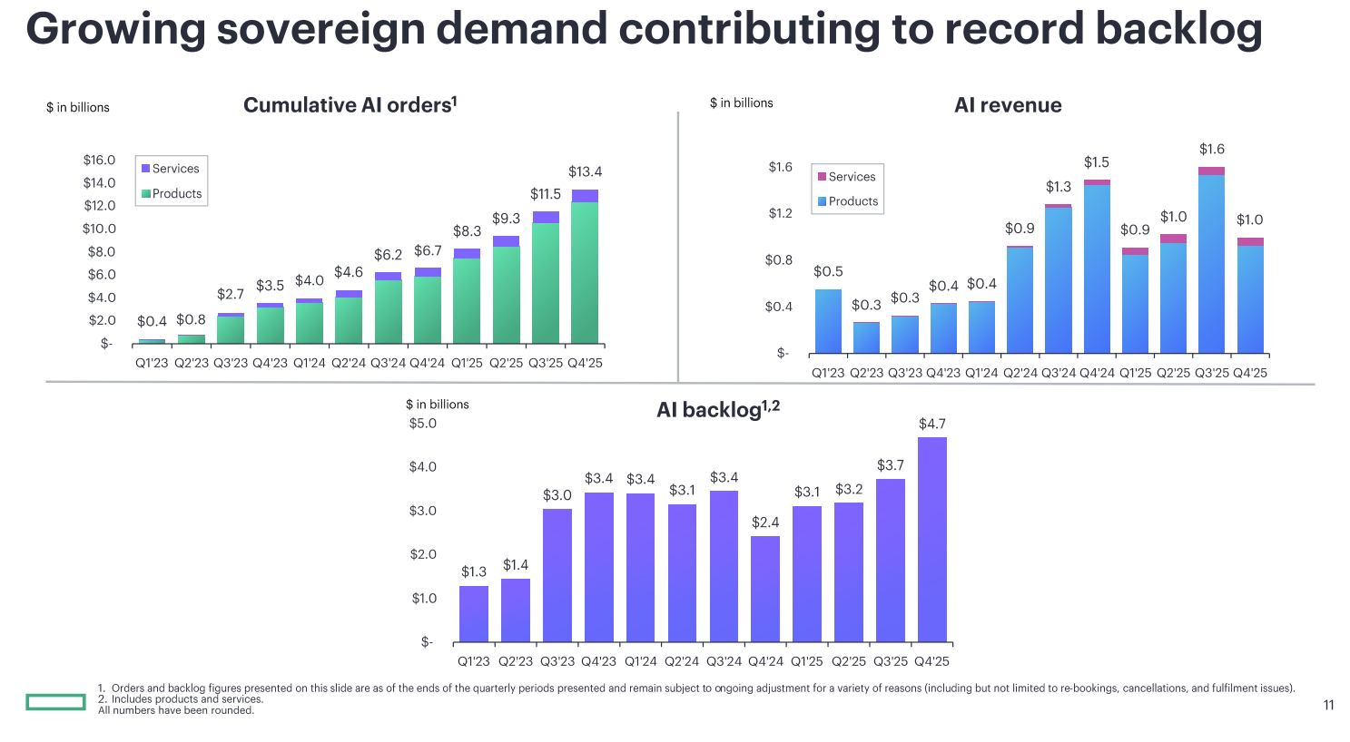 For fiscal 2026, HPE said revenue will grow 17% to 22% with non-GAAP per share earnings between $2.25 to $2.45.